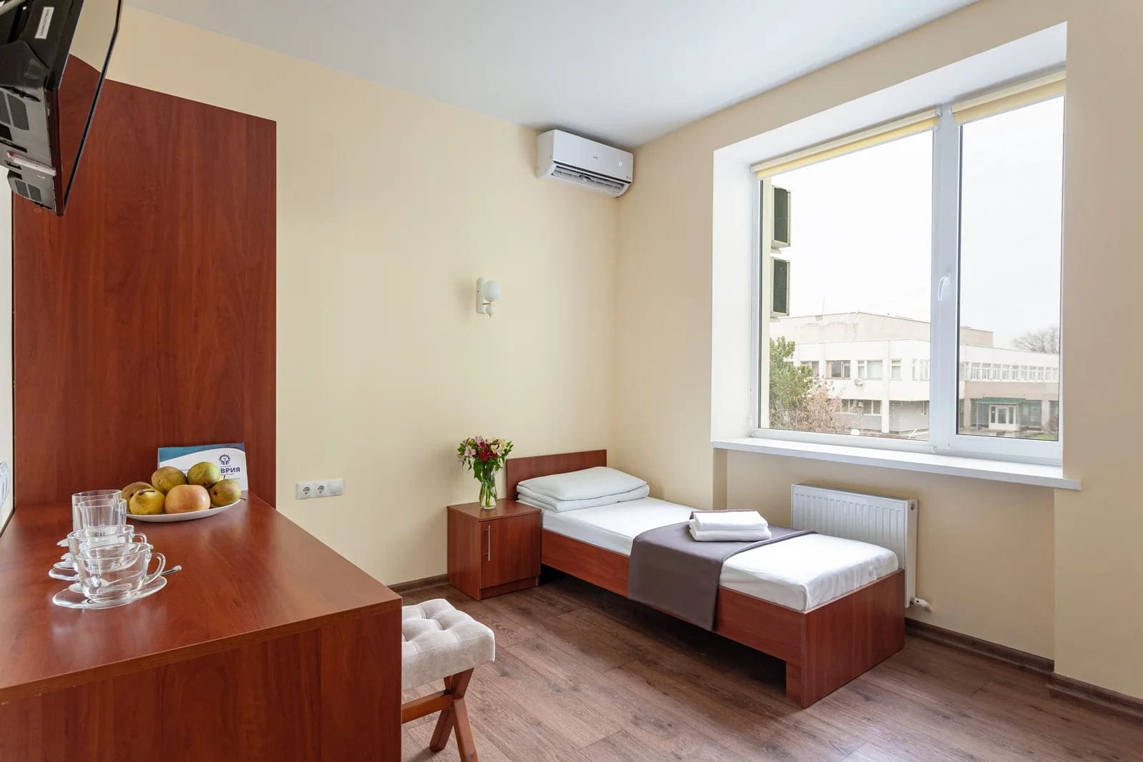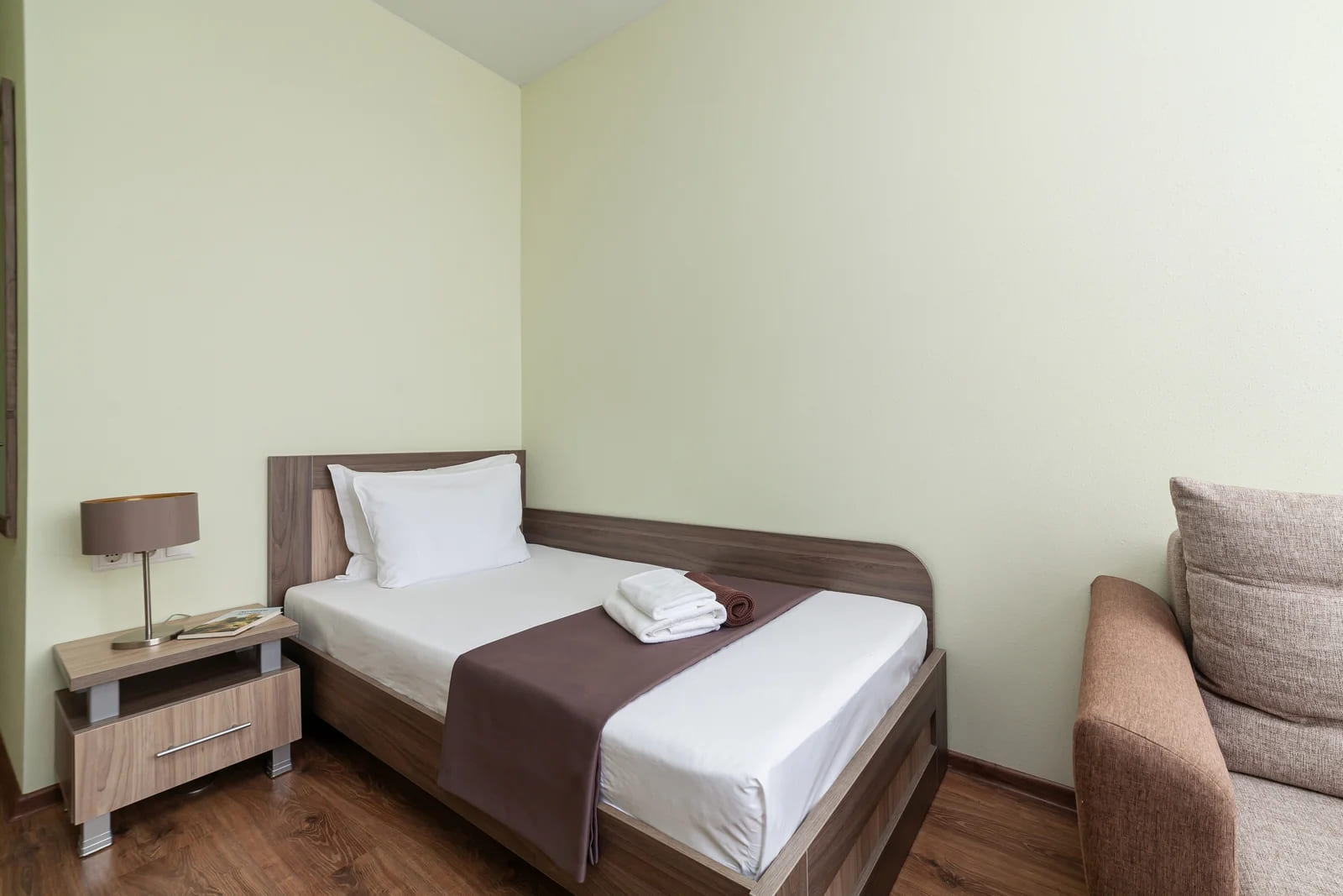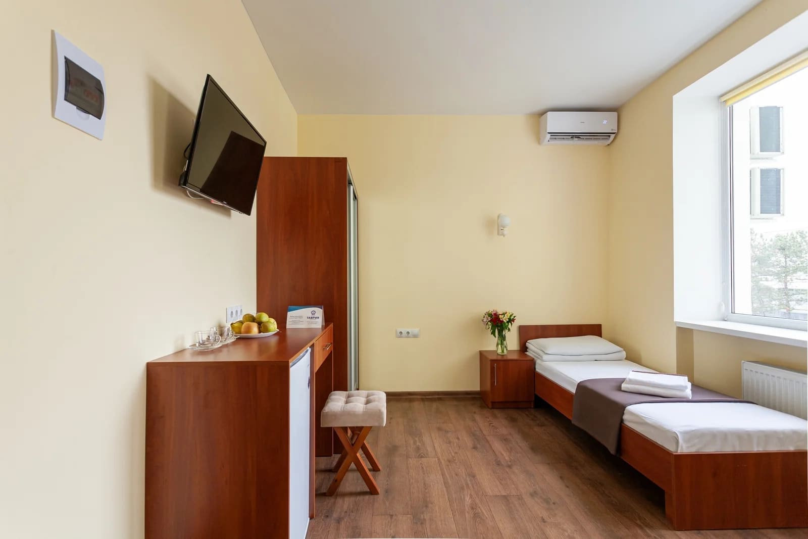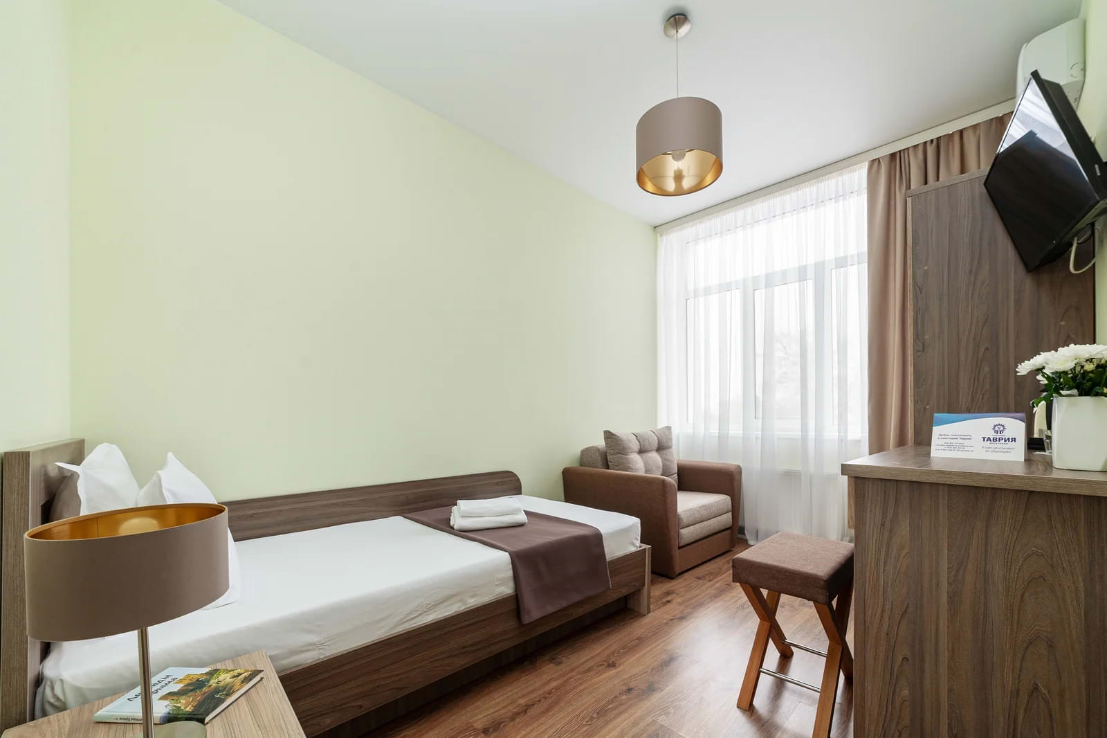 Площадь номера - 15 м², из окон открывается вид на парк.