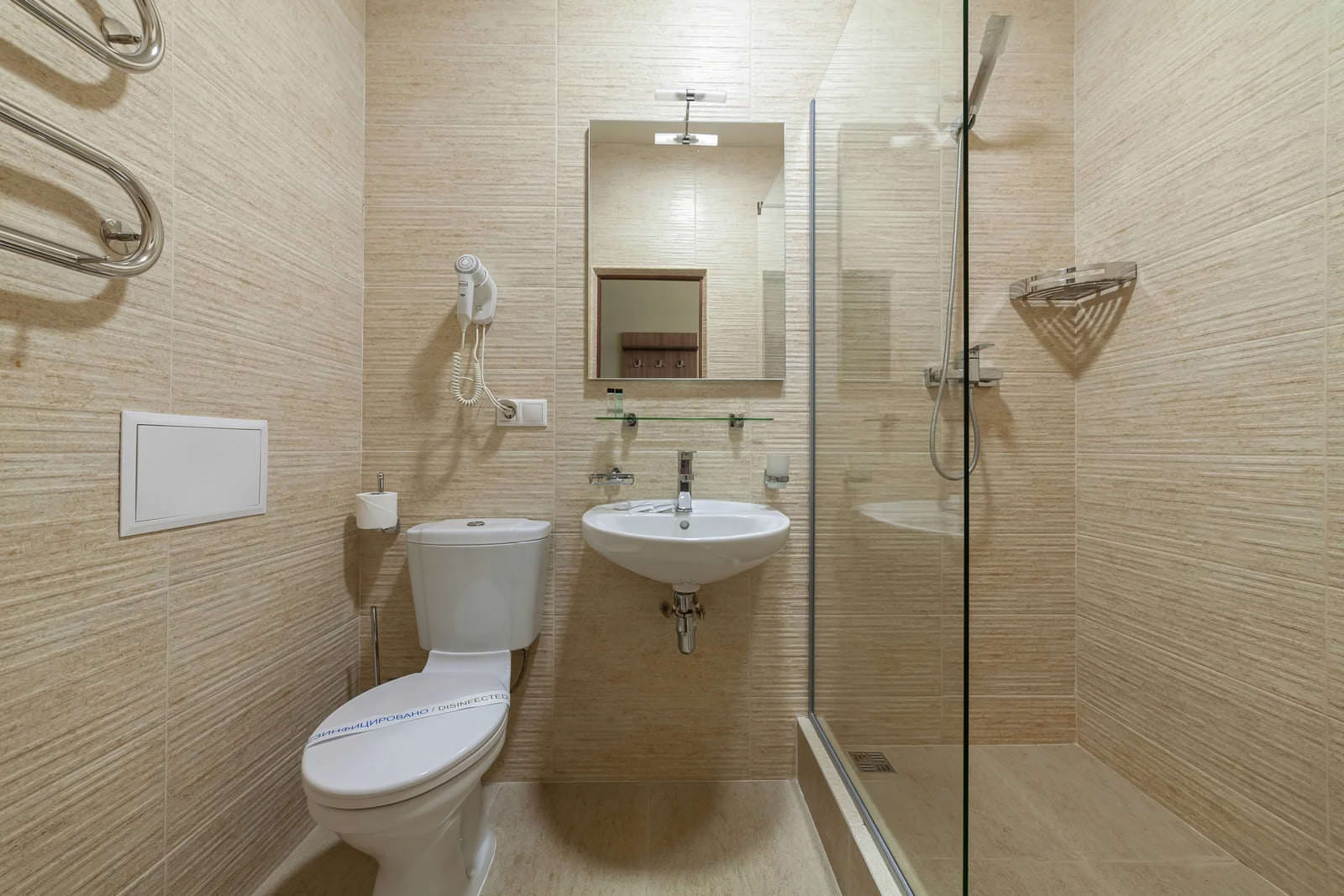 Для гостей предусмотрены ванная комната с душевой; мягкие махровые полотенца; фен; индивидуальная косметика.
