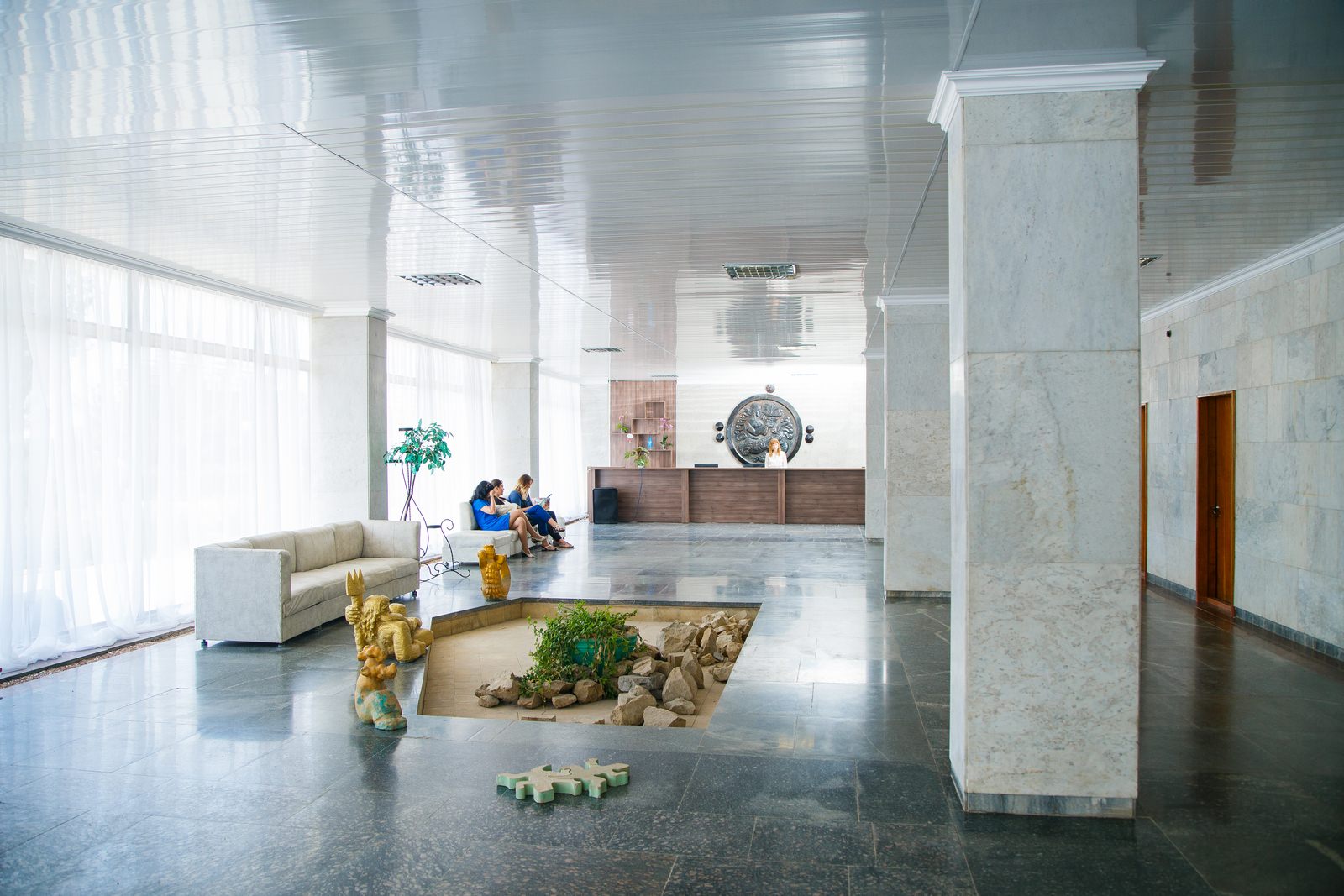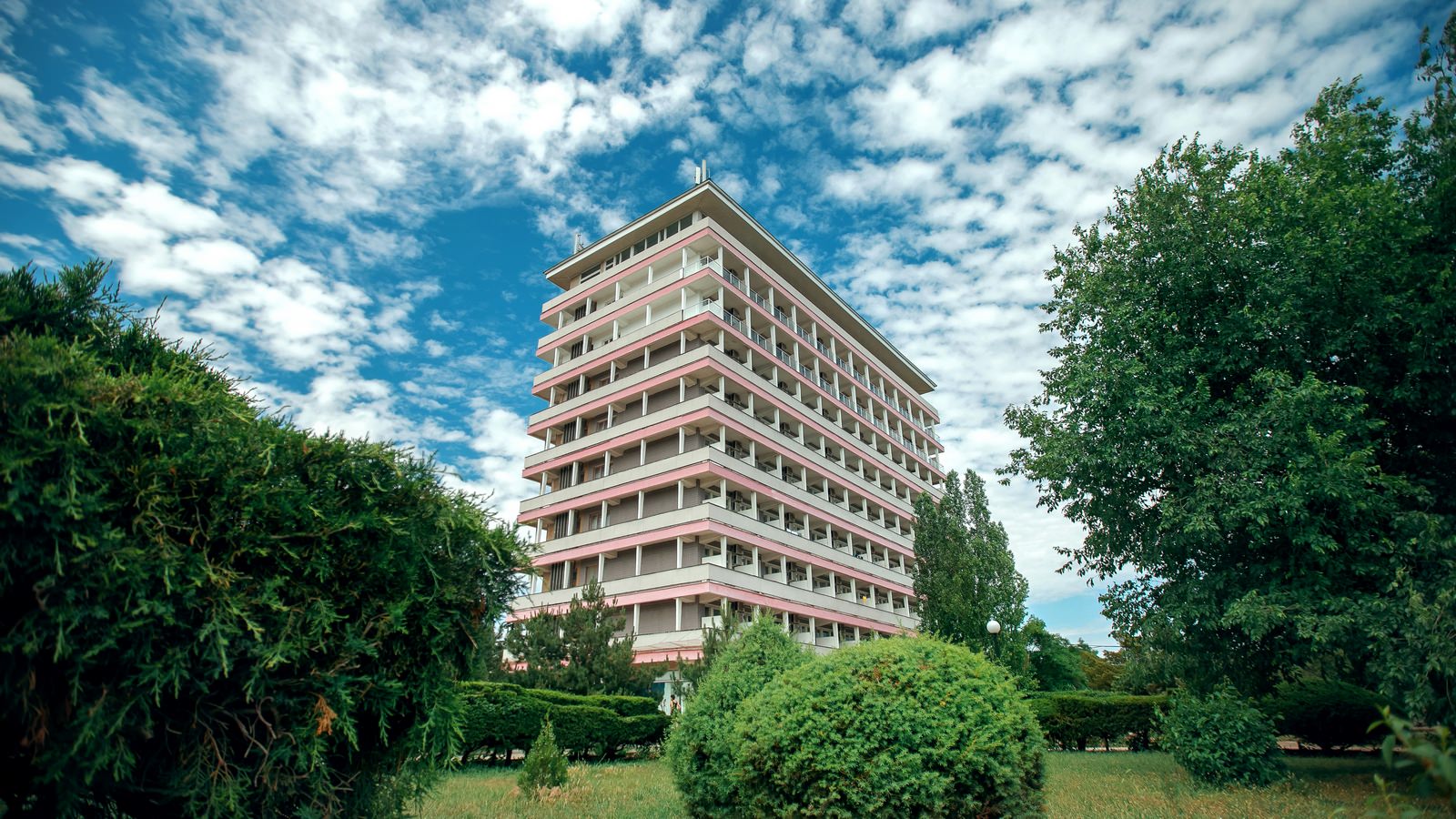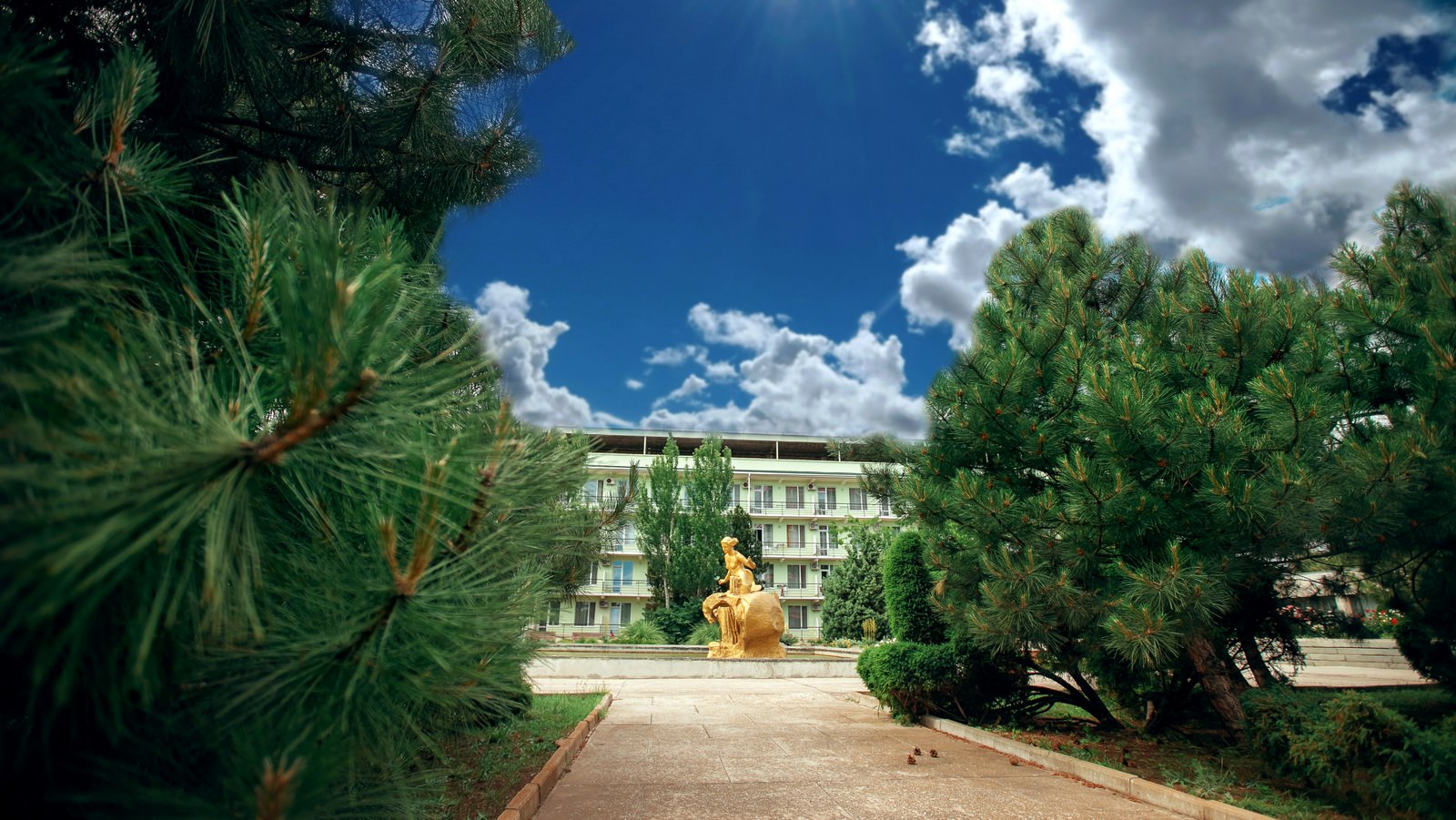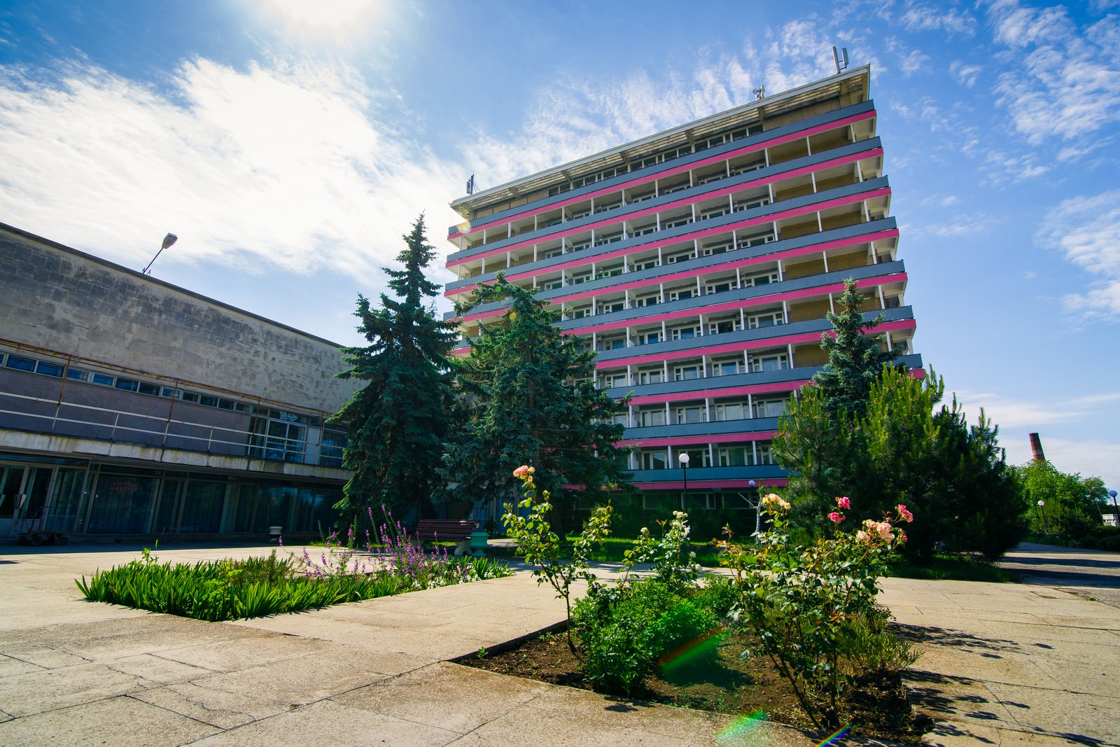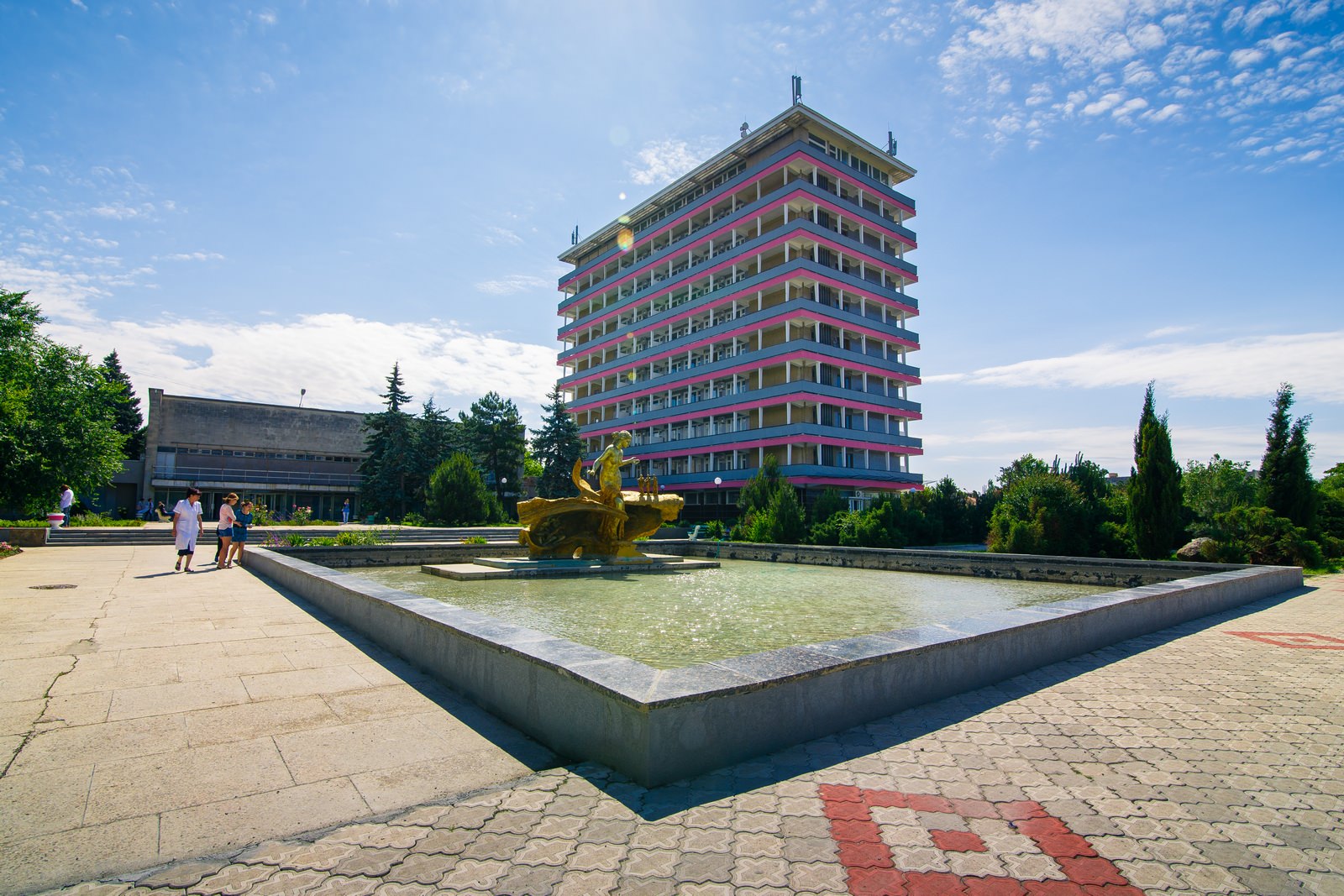 Инфраструктура: медицинский центр, диагностический кабинет; водо- и грязелечебница; собственный песчаный пляж; крытый бассейн – единственный в Евпатории с подогреваемой морской водой площадью 375 м2; «соляная комната» для галотерапии; SPA центр.